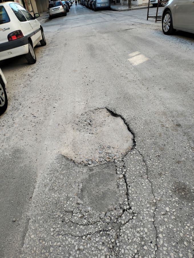 Ας πάνε να ρίξουν λίγες φτυαριές άσφαλτο γιατί έρχονται βροχές και η τρύπα θα μεγαλώσει….