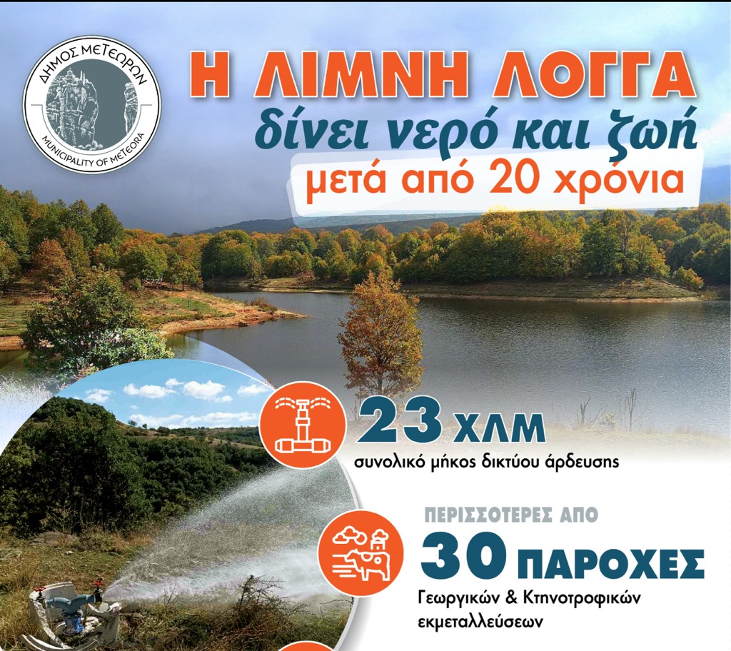 Μετά από 20 ολόκληρα χρόνια, το αρδευτικό δίκτυο από τη Λίμνη Λογγά τίθεται και