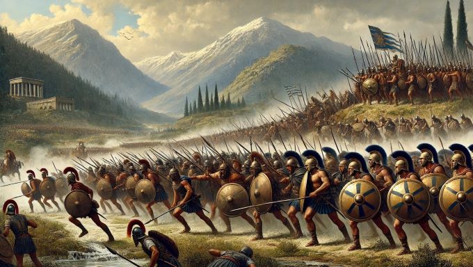 Το 490 π.Χ., η Περσική Αυτοκρατορία, υπό τον βασιλιά Δαρείο Α’, επιδίωξε να υποτάξει τις ελληνικές πόλεις-κράτη. Η σύγκρουση αυτή είχε τις ρίζες της στην Ιωνική Επανάσταση, όταν η Αθήνα και η Ερέτρια υποστήριξαν τις ιωνικές πόλεις στην επανάστασή τους κατά της περσικής κυριαρχίας. Εξοργισμένος από την ελληνική ανάμιξη και την επιδρομή στη Σάρδη, ο Δαρείος ορκίστηκε να τιμωρήσει την Αθήνα και την Ερέτρια. Οι περσικές δυνάμεις, υπό την ηγεσία των Δάτη και Αρταφέρνη, ξεκίνησαν εκστρατεία για να κατακτήσουν την Ελλάδα. Ο στόλος τους πολιόρκησε και κατέλαβε την Ερέτρια προτού αποβιβαστεί στην πεδιάδα του Μαραθώνα. Οι Αθηναίοι, αναγνωρίζοντας τον άμεσο κίνδυνο, ζήτησαν βοήθεια από τη Σπάρτη, αλλά οι θρησκευτικές γιορτές καθυστέρησαν τους Σπαρτιάτες. Έτσι, οι Αθηναίοι, μαζί με τους συμμάχους τους από τις Πλαταιές, προετοιμάστηκαν να αντιμετωπίσουν τους Πέρσες. Ο ελληνικός στρατός αποτελούνταν κυρίως από βαριά οπλισμένους οπλίτες, πολίτες-στρατιώτες εξοπλισμένους με δόρατα, μεγάλες ασπίδες, κράνη και θώρακες. Οι στρατιώτες αυτοί πολεμούσαν στη φάλαγγα, μια πυκνή γραμμή στρατιωτών που κινούνταν συντονισμένα, προσφέροντας τόσο επιθετική όσο και αμυντική δύναμη. Επιπλέον, οι Αθηναίοι διέθεταν μια μικρή δύναμη ελαφρά οπλισμένων στρατιωτών, όπως τοξότες και ακοντιστές, οι οποίοι ωστόσο είχαν μικρό ρόλο σε σχέση με τους οπλίτες. Από την άλλη πλευρά, ο περσικός στρατός ήταν μια ποικιλόμορφη δύναμη από διάφορες περιοχές της αχανούς αυτοκρατορίας. Περιλάμβανε ελαφρά οπλισμένο πεζικό, τοξότες και ιππικό. Οι επίλεκτοι Πέρσες, γνωστοί ως “Αθάνατοι”, με την βαριά τους πανοπλία και τα χαρακτηριστικά ασπίδια τους, ήταν ένα ισχυρό μέρος αυτής της δύναμης. Παρά την αριθμητική τους υπεροχή, οι Πέρσες ήταν σε μειονεκτική θέση στη μάχη σώμα με σώμα ενάντια στους βαριά οπλισμένους Έλληνες οπλίτες, ιδιαίτερα στο δύσβατο έδαφος του Μαραθώνα. Αντιμετωπίζοντας περίπου 25.000 Πέρσες πεζούς και 1.000 ιππείς, οι Αθηναίοι και οι Πλαταιείς κατάφεραν να συγκεντρώσουν περίπου 10.000 οπλίτες. Οι Έλληνες επέλεξαν το έδαφος του Μαραθώνα, χρησιμοποιώντας τους βάλτους και τα βουνά για να εξουδετερώσουν την αποτελεσματικότητα του περσικού ιππικού. Ο Αθηναίος στρατηγός Μιλτιάδης συνέλαβε μια τολμηρή στρατηγική, ενισχύοντας τα πλευρά και αραιώνοντας το κέντρο της παράταξης. Το σχέδιο του Μιλτιάδη ήταν να παρασύρει το περσικό κέντρο προς τα εμπρός και στη συνέχεια να τους κυκλώσει με τα ισχυρότερα ελληνικά πλευρά. Αυτή η τακτική εκμεταλλεύτηκε την περσική εξάρτηση από τα επίλεκτα στρατεύματα στο κέντρο, τα οποία θα προχωρούσαν μέσα από το ελληνικό μέσο, μόνο για να περικυκλωθούν και να συντριβούν από τα πλευρά. Τα ξημερώματα, οι Έλληνες εξαπέλυσαν αιφνιδιαστική έφοδο κατεβαίνοντας τις πλαγιές του Μαραθώνα. Οι σφιχτά οργανωμένοι οπλίτες προχώρησαν γρήγορα, κλείνοντας την απόσταση υπό μια βροχή από περσικά βέλη. Η παράταξή τους, γνωστή ως φάλαγγα, τους επέτρεψε να κινούνται ως ένα ενιαίο, ισχυρό σώμα. Η αρχική σύγκρουση ήταν σφοδρή. Οι Πέρσες, με επικεφαλής τα επίλεκτα στρατεύματα στο κέντρο, αρχικά απώθησαν το αραιό ελληνικό κέντρο. Ωστόσο, καθώς το περσικό κέντρο προχωρούσε, τα ελληνικά πλευρά κράτησαν σταθερά και άρχισαν να περικυκλώνουν τις περσικές πτέρυγες. Με το κέντρο τους να καταρρέει και τα πλευρά τους να κατακλύζονται, οι περσικές δυνάμεις βρέθηκαν σε χαοτική υπο