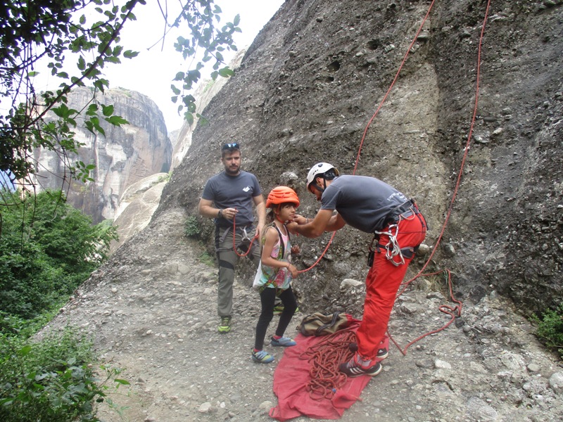 Από το πρωί έως το μεσημέρι αρκετά αγοράκια και κοριτσάκια που απαρτίζουν τα παιδικά τμήματα του ΣΟΧΤ έκαναν την πρώτη τους αναρρίχηση σε βράχο των Μετεώρων.
