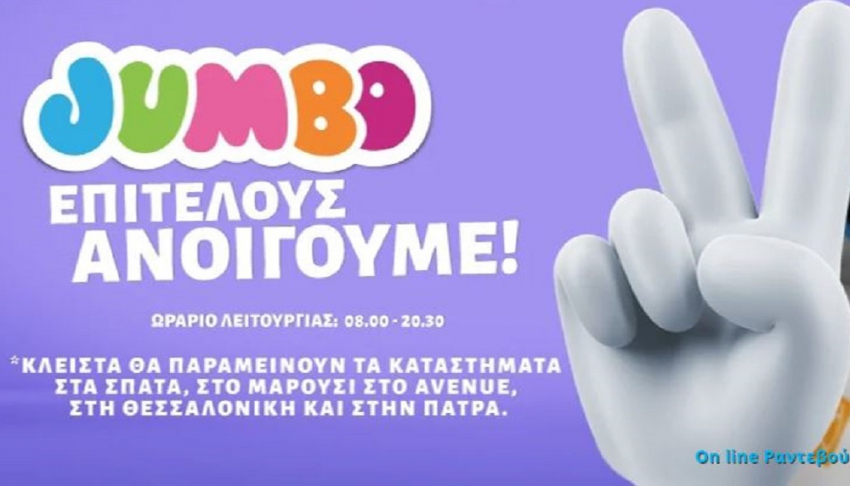 Σημειώστε, τέλος, πως το ωράριο λειτουργίας των JUMBO, όπως αναφέρει η εταιρεία είναι: από Δευτέρα έως Σάββατο 08.00-20.30
