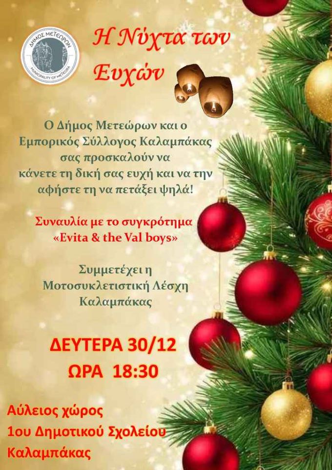 trikaladay.gr / Τοπικά / Η Νύχτα των Ευχών στην Καλαμπάκα τη Δευτέρα 30/12 – Συναυλία με το το συγκρότημα «Evita & the Val boys»,