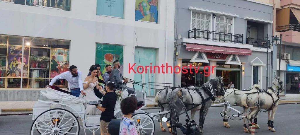 Η νεαρή γυναίκα δεν πήγε στην εκκλησία με αυτοκίνητο, όπως συνηθίζεται σε αυτές τις περιπτώσεις, αλλά με άμαξα και μάλιστα υπό την συνοδεία κλαρίνων, όπως αναφέρει το korinthostv.gr.
