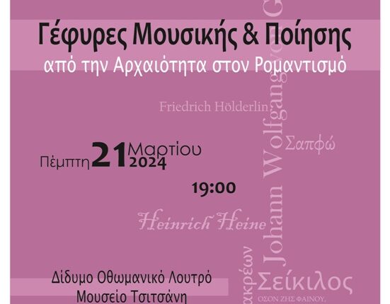 Σαπφούς, του Σοφοκλή, του Goethe, του Heine, του Hölderlin κ.ά. Την εκδήλωση θα