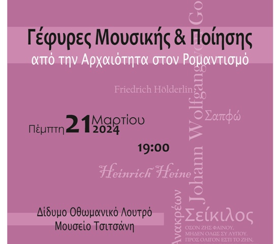 Σαπφούς, του Σοφοκλή, του Goethe, του Heine, του Hölderlin κ.ά. Την εκδήλωση θα