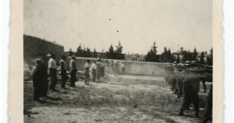 Πρόκειται για μία από τις 13 συνολικά φωτογραφίες από την εκτέλεση των 200 από του Γερμανούς κατακτητές, την Πρωτομαγιά του 1944, που αγόρασε το ελληνικό κράτος.