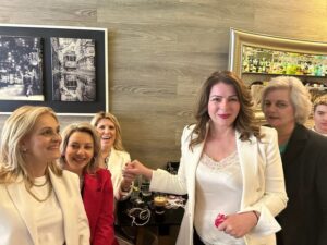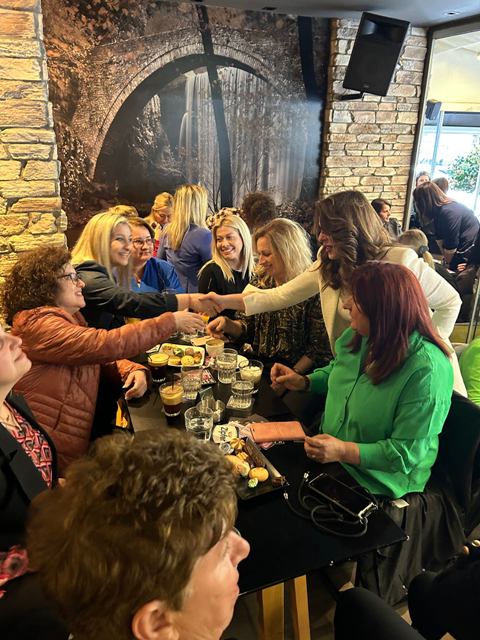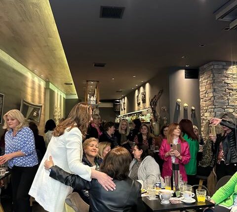συγκέντρωση της Κατερίνας Παπακώστα, σε κεντρικό καφέ της πόλης, τιμώντας τη για