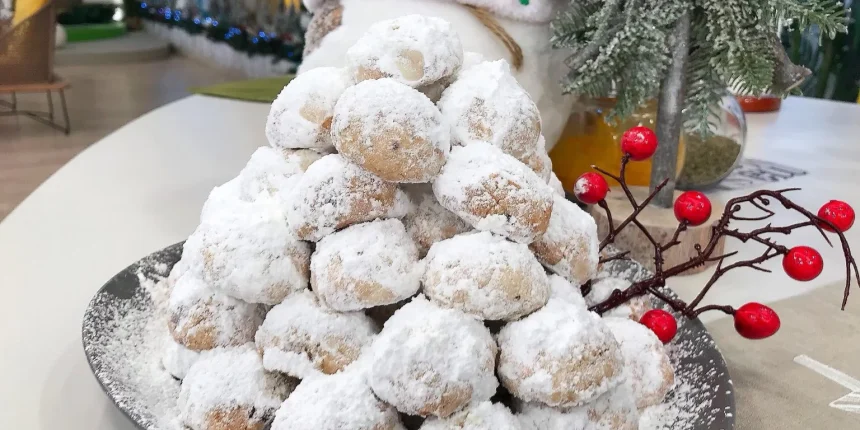 - Πλάθουμε σε μπαλάκια 20 γρ. και τα βάζουμε σε ένα ταψί με λαδόκολλα, αφήνοντας ένα δάχτυλο απόσταση το ένα απ’ το άλλο.