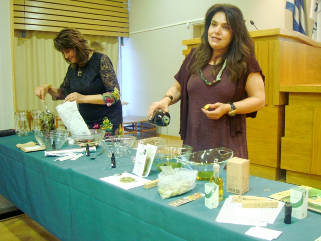 Προς το τέλος της εκπαιδευτικής ημερίδας, οι εισηγήτριες δίνοντας απαντήσεις σε ερωτήματα του ακροατηρίου, ετοίμαζαν ρόφημα με ελληνικά ΑΦΦ και ελαιόλαδο με αιθέρια έλαια ΑΦΦ, τα οποία διέθεσαν στο κοινό προς γευσιγνωσία.