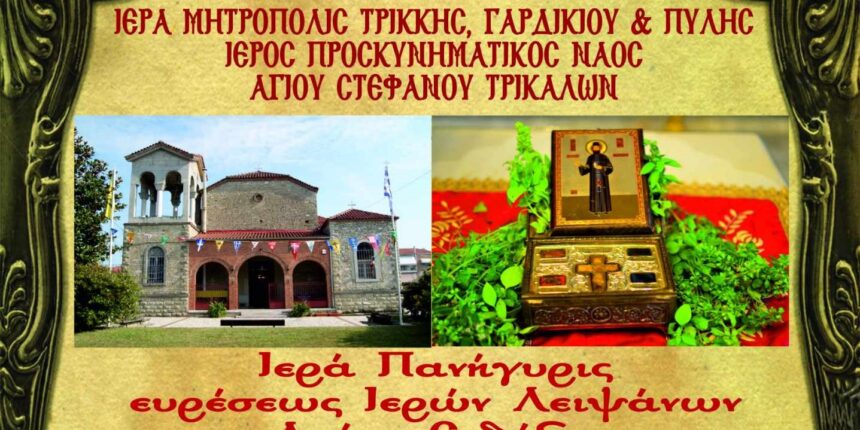 trikaladay.gr / Τοπικά / Ιερά Πανήγυρις ευρέσεως Ιερών Λειψάνων Αγίου Ενδόξου Μεγαλομάρτυρος Εφραίμ Τρίκκης στον Ιερό Προσκυνηματικό Ναό Αγίου Στεφάνου Τρικάλων