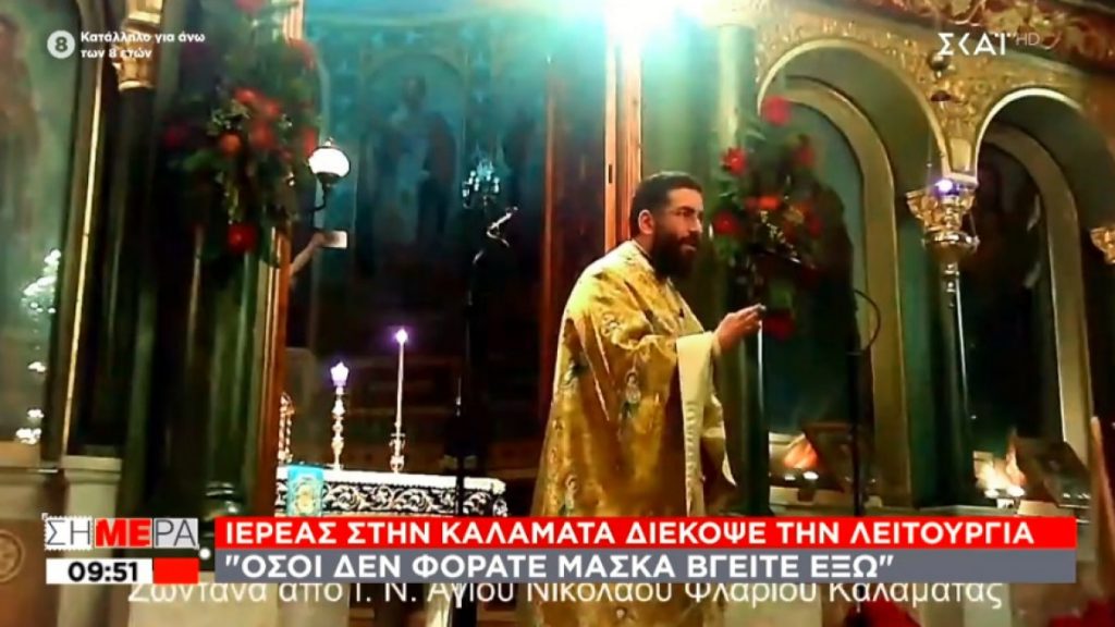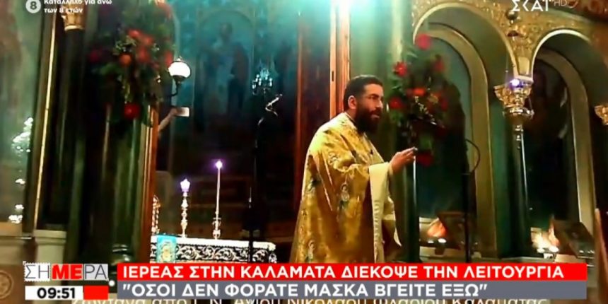 Τη Χριστουγεννιάτικη λειτουργία διέκοψε ιερέας στον Ιερό Ναό Αγίου Νικολάου Φλαρίου Καλαμάτας, ζητώντας από τους πιστούς που δεν φορούσαν μάσκα να βγουν έξω.