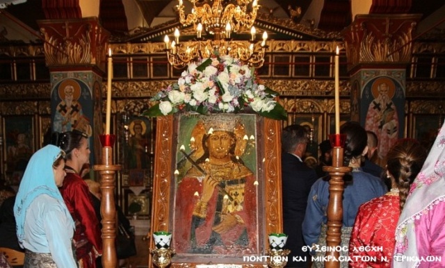 Το απόγευμα της Παρασκευής 20 Σεπτεμβρίου η Εύξεινος Λέσχη Ποντίων και Μικρασιατών νομού Τρικάλων συμμετείχε στην υποδοχή του ιερού λειψάνου της Αγ. Κυριακής εκ Σινώπης του Πόντου, στο χωριό της Αγ. Κυριακής Τρικάλων, με συνακόλουθη Ιερή Λιτάνευση αυτού και της ιεράς εικόνας της Αγίας. Την υποδοχή έκανε ο Σεβασμιώτατος Μητροπολίτης Τρίκκης και Σταγών κ. Χρυσόστομος, ενώ στο πανηγυρικό Εσπερινό χοροστάτησε ο Σεβασμιώτατος Μητροπολίτης Ναζαρέτ κ. Κυριακός.
