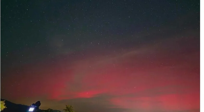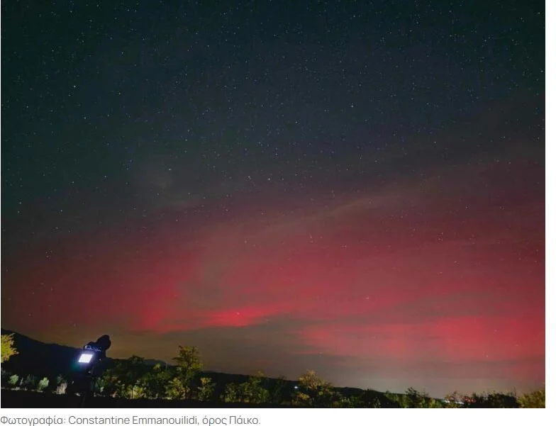 Το Σέλας, ένα εξαιρετικά σπάνιο φαινόμενο εξαιτίας της ισχυρής γεωμαγνητική καταιγίδας, φώτισε τον ελληνικό ορίζοντα. Το κόκκινο χρώμα του ουρανού οφείλεται σε συγκρούσεις σωματιδίων μικρότερης ενέργειας με άτομα οξυγόνου σε μεγάλα υψόμετρα ύστερα από έντονη ηλιακή δραστηριότητα που προκαλεί μία τεράστια εκτόξευση ηλιακού πλάσματος από την επιφάνεια του Ηλίου με κατεύθυνση προς τη Γη.