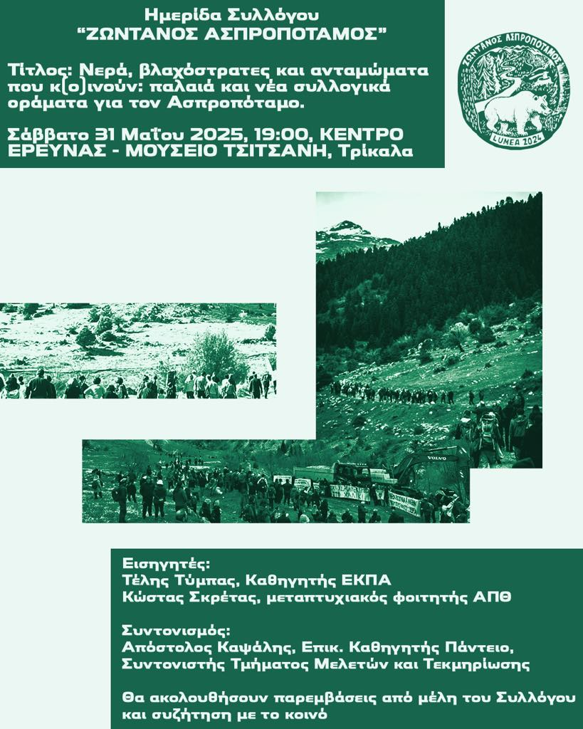 Για το σκοπό αυτό ο Ζωντανός Ασπροπόταμος διοργανώνει Ημερίδα το Σάββατο 31 Μαΐου 2025,