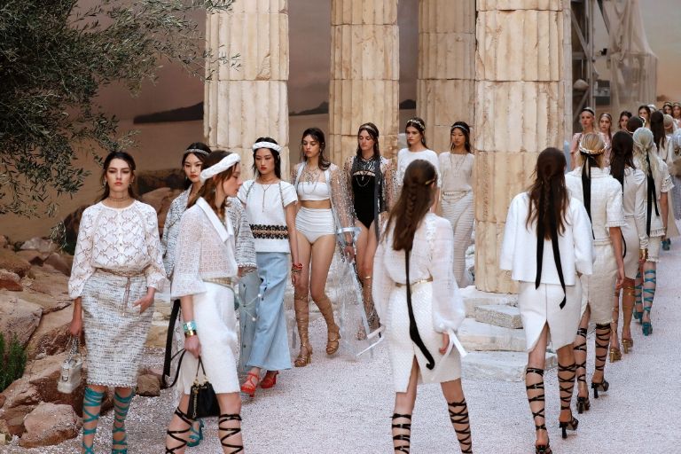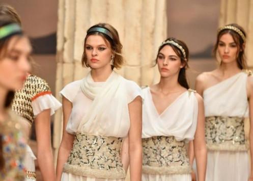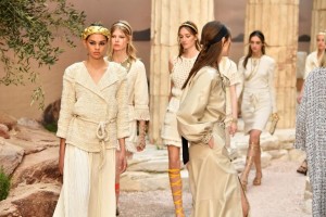 Μέχρι στιγμής ο οίκος Chanel έχει παρουσιάσει τις Cruise συλλογές του σε περιοχές όπως Ρώμη, Κούβα, Ντουμπάι. Αυτήν τη φορά όμως αποφάσισε να κρατήσει την έδρα του, το Παρίσι, και να μεταμορφώσει το χώρο σε κάτι διαφορετικό. Σε κάτι που θύμιζε Ελλάδα. Το show έλαβε μέρος στον Grand Palais στο Παρίσι και ο Karl Lagerfeld μετέτρεψε το χώρο σε έναν αρχαίο ελληνικό ναό, γεμάτο με κολώνες, ερείπια και μάρμαρα.