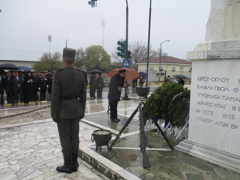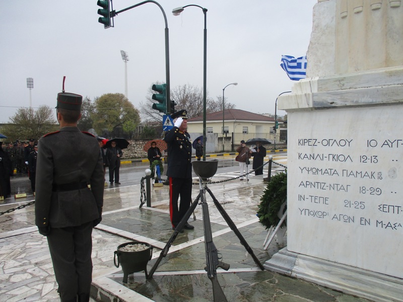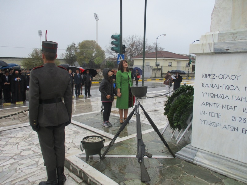 Με την καθιερωμένη κατάθεση στεφάνων στο μνημείο πεσόντων στη Σχολή Μονίμων Υπαξιωματικών Τρικάλων, τιμήθηκε η σημερινή εθνική επέτειος της 25ης Μαρτίου 1821.