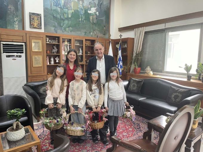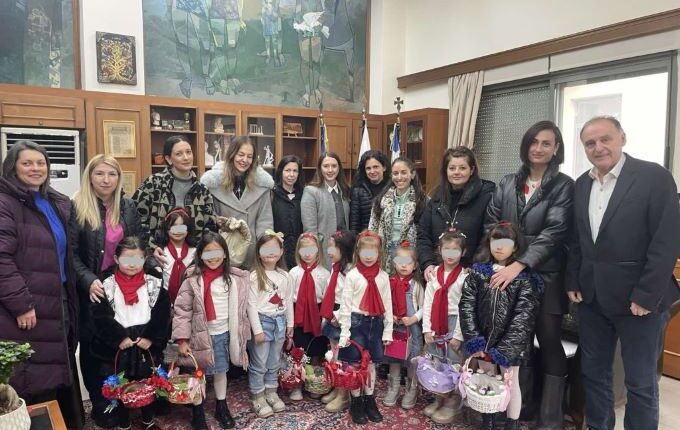κορίτσια τάξεων Δημοτικού Σχολείου έψαλαν τα κάλαντα στον δημαρχεύοντα Τάκη Παζαΐτη