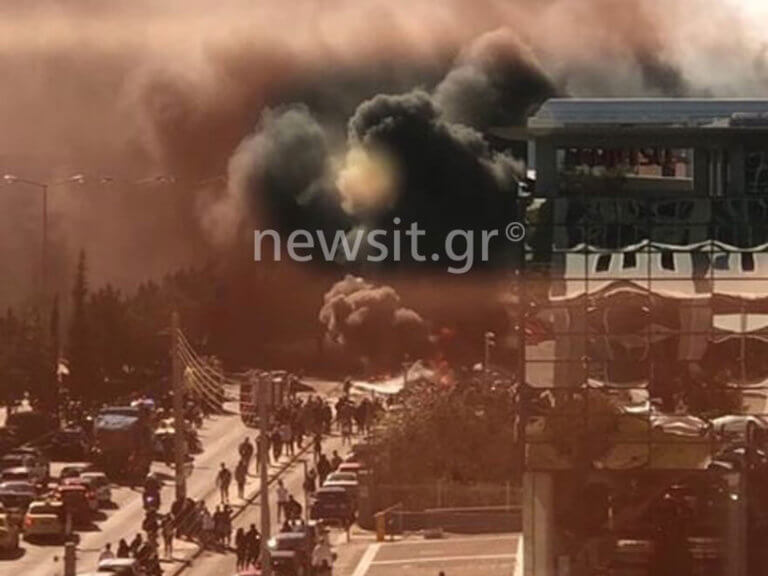 Πυκνός μαύρος καπνός κάλυψε την περιοχή, στο ύψος της συμβολής της Βουλιαγμένης με τη Γρηγορίου Λαμπράκη στη Γλυφάδα, με αποτέλεσμα να κλείσουν και τα δυο ρεύματα της λεωφόρου.