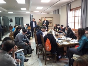 Ο Δήμαρχος Καλαμπάκας κος Χρήστος Σινάνης και ο Αντιδήμαρχος κος Κώστας Ράντος υποδέχτηκαν σήμερα το πρωί στο Δημαρχείο πολυπληθή αντιπροσωπεία είκοσι οκτώ Ισραηλινών φοιτητών τουριστικών επαγγελμάτων του Κολλεγίου Hadassah και του Πανεπιστημίου Ben-Gurion University of the Negev της Ιερουσαλήμ συνοδεία καθηγητών τους στα πλαίσια εκπαιδευτικής εκδρομής στην Ελλάδα και ειδικότερα στην περιοχή των Μετεώρων