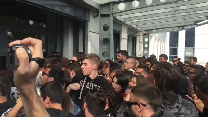 Με κεντρικό σύνθημα το “Τσίπρα-Γαβρογλου ακούστε το καλά αυτό το νομοσχέδιο θα μείνει στα χαρτιά” και κρατώντας πανό, οι φοιτητές και οι μαθητές λίγο μετά τισ 13:00 κατάφεραν να σπάσουν τον κλοιό της αστυνομίας στην είσοδο του υπουργείου και να μπουν αρχικά στον περιβάλλοντα χώρο και στη συνέχεια κατάφεραν να μπουν και στο κτίριο.