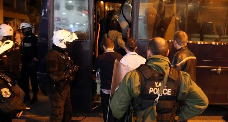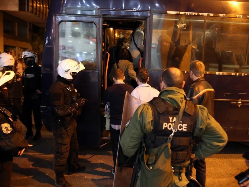 Η ΕΛ.ΑΣ προχώρησε σε τουλάχιστον 15 προσαγωγές. Τα μέλη του Ρουβίκωνα μεταφέρθηκαν στη ΓΑΔΑ με κλούβα της Αστυνομίας.