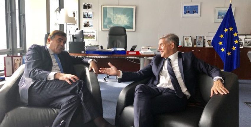 Στο πλαίσιο της συνάντησης, ο κ. Αγοραστός πρόσφερε στον Έλληνα επίτροπο κ. Σχοινά αναμνηστικά, μεταξύ των οποίων και αντίγραφο αρχαίου Θεσσαλικού νομίσματος, από την τελετή ορκωμοσίας του, στο Αρχαίο Θέατρο της Λάρισας.