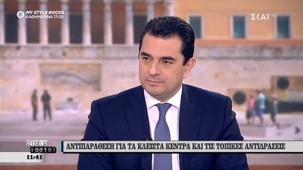 Την αποφασιστικότητα της Κυβέρνησης να υπερασπιστεί χωρίς καμία ολιγωρία το δικαίωμα όλων των Ελλήνων στην ασφάλεια, επιδεικνύοντας μηδενική ανοχή στα φαινόμενα βίας και ανομίας, εξέφρασε ο Υφυπουργός Αγροτικής Ανάπτυξης και Τροφίμων Κώστας Σκρέκας, μιλώντας την Τετάρτη στην εκπομπή «Αταίριαστοι» της τηλεόρασης του Σκάι.