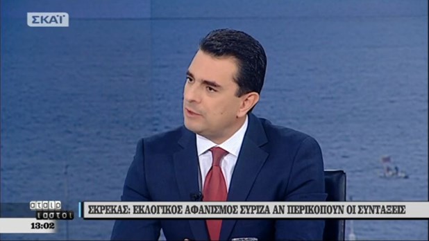 Μιλώντας στην πρωινή εκπομπή του ΣΚΑΙ «Αταίριαστοι», ο Τομεάρχης Περιβάλλοντος και Ενέργειας της ΝΔ και Βουλευτής Τρικάλων κ. Κώστας Σκρέκας ανέφερε ότι ο κ. Τσίπρας κινδυνεύει με εκλογικό αφανισμό,γι αυτό παραδίδειτα πάντα στην 4η αξιολόγηση ώστε να πάρει παράταση για τα μέτρα του 2019 καινα κερδίσει χρόνο στην εξουσία.