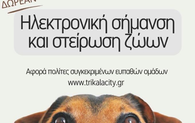 ζώων από τον Δήμο Τρικκαίων. Το πρόγραμμα δωρεάν ηλεκτρονικής σήμανσης και