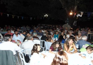 Τελειώνοντας το παραπάνω έθιμο ο κόσμος κάθισε στα τραπέζια απολαμβάνοντας το νόστιμο ψητό και τα άλλα εδέσματα του καταστήματος, ακούγοντας συγχρόνως τα επιτραπέζια και χορευτικά δημοτικά τραγούδια που έπαιζε η δημοτική ορχήστρα του Ανδρέα Ζυγογιάννη (κλαρίνο), Θανάση Μανίκα και Φώτη Τσιγαρίδα (τραγούδι), Τριαντάφυλλο Αβράμη (Αρμόνιο), Ντίνα Γρηγόριο(Βιολί), Μπακλαβάς Γεώργιος(ντραμς), Γκοβίνας Κων/νος(κιθάρα).