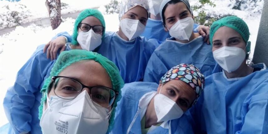 Μία μητέρα ανηλίκου που ήταν στο πόστο της για πάνω από 48 ώρες, μία μητέρα δύο ανήλικων που έκανε δύο συνεχόμενες νοσηλευτικές βάρδιες. Τέσσερα κορίτσια χωρίς καν μόνιμη δουλειά, που αποκλείστηκαν στο νοσοκομείο, και δούλεψαν και το επόμενο πρωί», γράφει η νοσηλεύτρια για τα πρόσωπα της φωτογραφίας και προσθέτει.