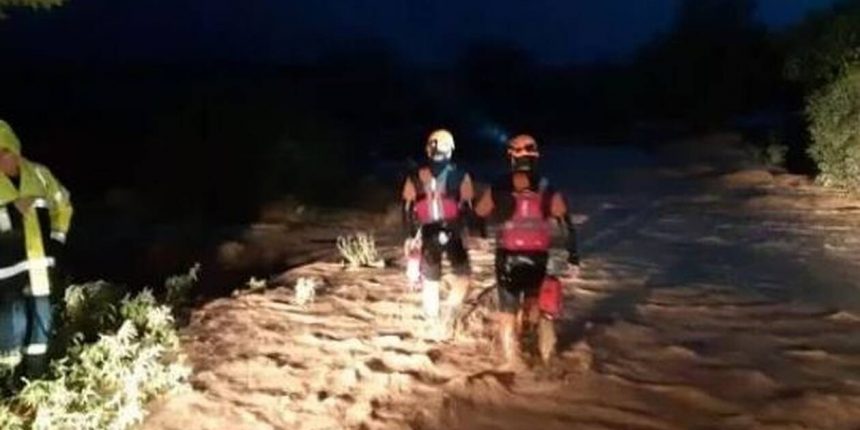 Το όχημά τους παρασύρθηκε από τα νερά της βροχής, τα οποία έχουν μετατρέψει το σημείο σε χείμαρρο, και οι ίδιοι είναι αδύνατο να μετακινηθούν.