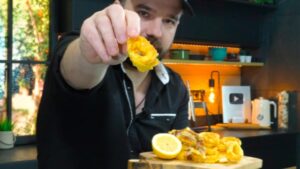- Ψήνουμε στο air fryer στο πρόγραμμα για τα ψάρια για 15 λεπτά στους 180 c.
