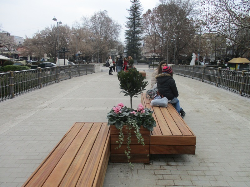 Όπως κατέγραψε το trikaladay στα δυο παρτέρια που βρίσκονται ανάμεσα στα παγκάκια που έχουν τοποθετηθεί φυτεύτηκαν όμορφα λουλούδια.