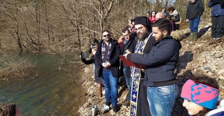 Μια μικρή μαθήτρια Δημοτικού από το χωριό Πετροχώρι τόλμησε και έπεσε στα παγωμένα νερά της λίμνης Στεφανιάδας πιάνοντας το Σταυρό στην καθιερωμένη τελετή Αγιασμού των Υδάτων στο Δήμο Αργιθέας.