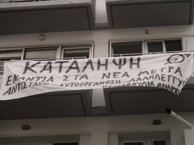 Σύμφωνα με τις πρώτες πληροφορίες του trikaladay οι καταληψίες εμφανίστηκαν ως ομάδα αναρχικών. εκ των οποίων τρεις με καλυμένα τα χαρακτηριστικά των προσώπων τους, και διαμαρτύρονται για την κυβερνητική πολιτική και το νέο μνημόνιο.
