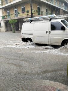 Συνέπεια της έντονης βροχόπτωσης ήταν να πλημμυρίσουν υπόγεια και ισόγεια καταστημάτων και κατοικιών