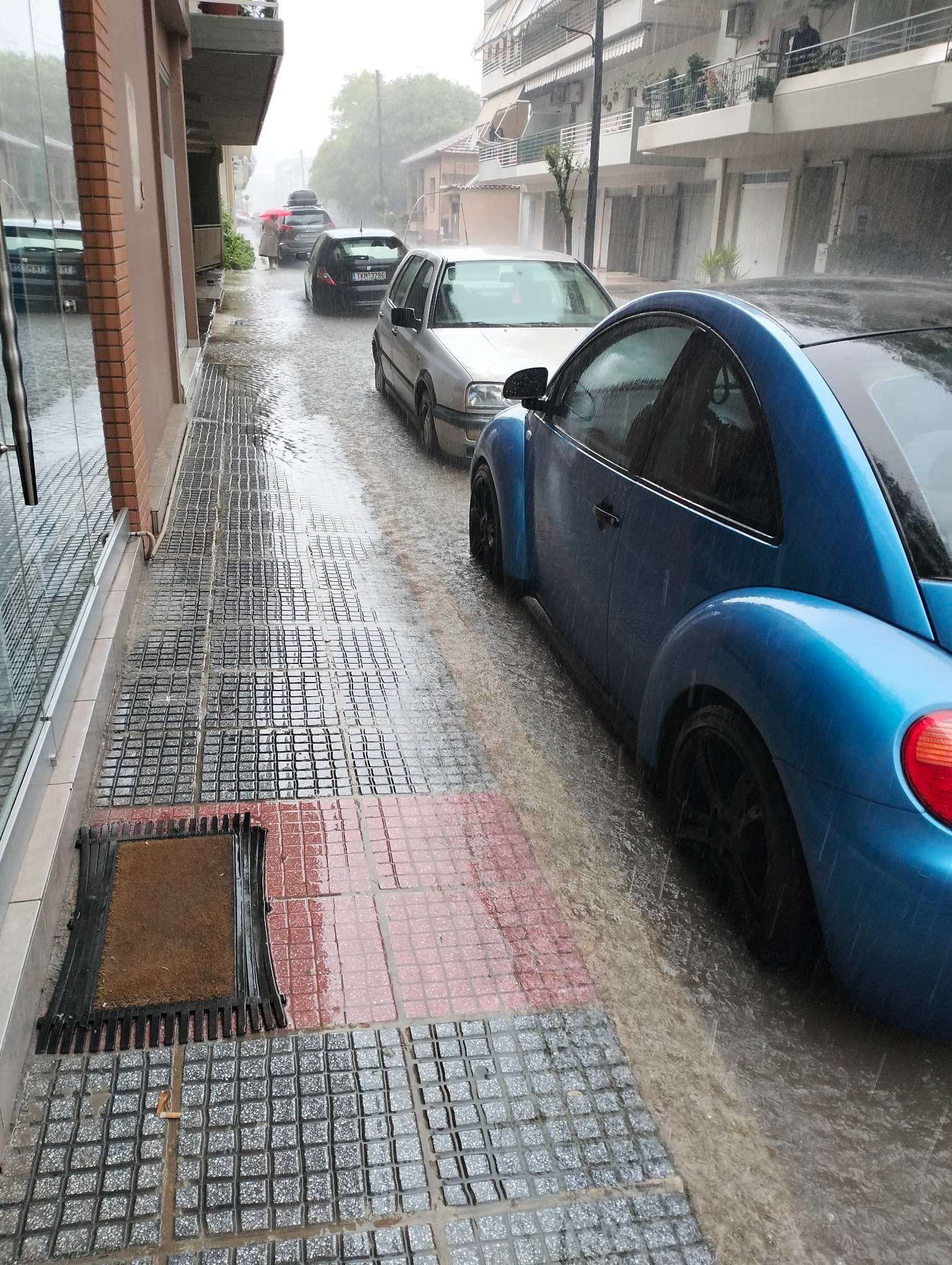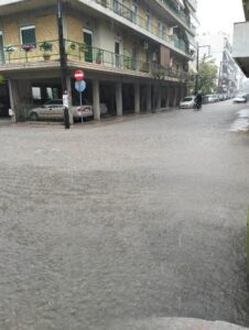 Εντονη βροχόπτωση σημειώνεται τις τελευταίες ώρες με αποτέλεσμα τα να πλημμυρίσουν πολλοί δρόμοι της πόλης.