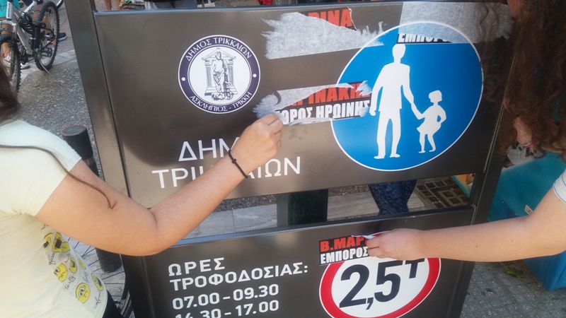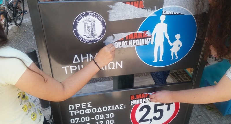 Ούτε 24 ώρες δεν πρόλαβε να μείνει ανέπαφη η νέα πινακίδα για τον πεζόδρομο στην οδό Ι. Αδάμ και κάποιοι φρόντισαν να τη γεμίσουν με αυτοκόλλητα. Τοποθετήθηκε από τον Δήμο Τρικκαίων την Τρίτη και την Τετάρτη ήταν γεμάτη με κολλημένα χαρτάκια. Δεν έχει σημασία τι γράφουν, φυσικά, αλλά το ότι ορισμένοι δεν δείχνουν σεβασμό στην ίδια τους την πόλη. Το ευτύχημα, όμως, είναι, ότι νεαρές συμπολίτισσες σήμερα το πρωί, ανέλαβαν δράση! Αρχισαν να ξεκολλούν αυτά τα αυτοκόλλητα, λέγοντας ακριβώς ότι δεν μπορεί να βρωμίζουμε την πόλη. Και ειδικά τις πινακίδες ενημέρωσης, ειδικά μόλις λίγες ώρες μετά την τοποθέτησή τους!