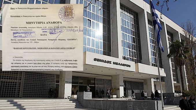 Στην Εισαγγελία πρωτοδικείου Αθηνών υποβλήθηκε μηνυτήρια αναφορά από τον δικηγόρο Νίκο Αντωνιάδη προκειμένου να ερευνηθούν όλα τα στοιχεία και αυτά των ιατρικών φακέλων που αφορούν την καταγραφή κρουσμάτων κορωνοϊού.