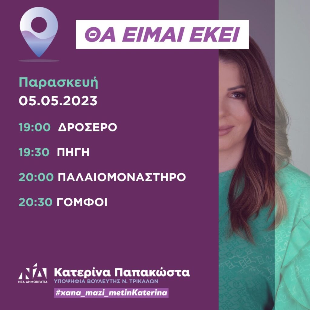 trikaladay.gr / Τοπικά / Κατερίνα Παπακώστα: Πρόγραμμα επισκέψεων Παρασκευής, 5 Μαΐου 2023