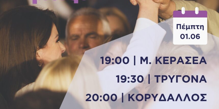 Κατερίνα Παπακώστα, θα επισκεφθεί την Μ. Κερασέα, την Τρυγόνα, τον Κορυδαλλό
