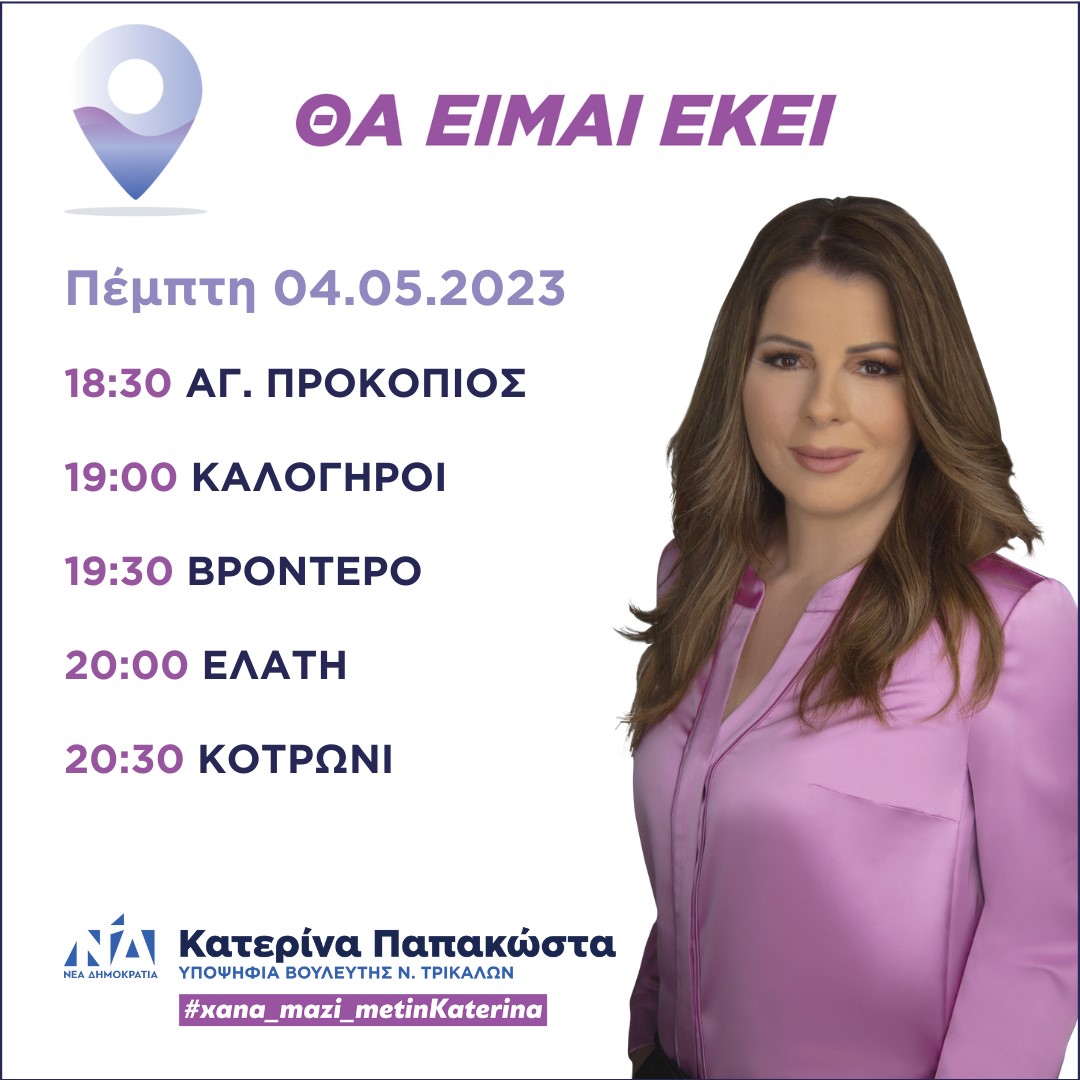 Την Πέμπτη, 4 Μαΐου 2023, η Υποψήφια Βουλευτής της Νέας Δημοκρατίας,