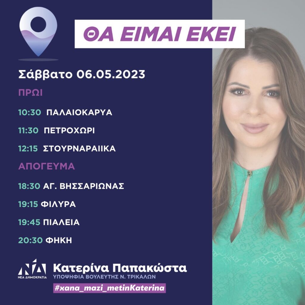 Το Σάββατο, 6 Μαΐου 2023, η Υποψήφια Βουλευτής της Νέας Δημοκρατίας,