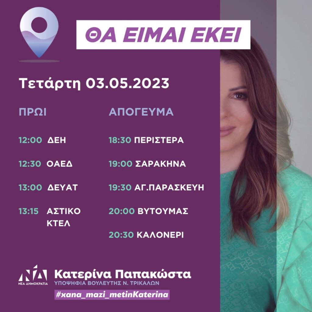 Την Τετάρτη, 3 Μαΐου 2023, το πρωί, η Υποψήφια Βουλευτής της Νέας