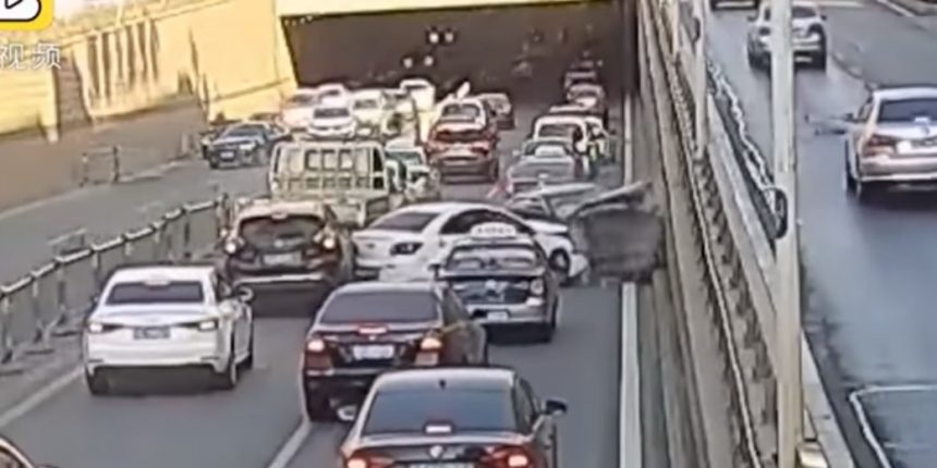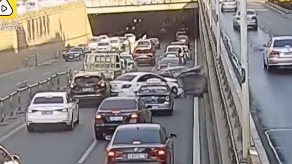 Η γυναίκα οδηγούσε τη μοβ Mercedes της σε έναν πολυσύχναστο αυτοκινητόδρομο της Hefei, στην επαρχία Anhui της ανατολικής Κίνας, όταν έχασε τον έλεγχο, έπεσε πάνω στο κινητό διαχωριστικό κιγκλίδωμα και πέρασε στο αντίθετο ρεύμα. Εκεί χτύπησε κάμποσα αυτοκίνητα, πριν επιστρέψει στο ρεύμα της, όπου τράκαρε άλλα δύο και στη συνέχεια ξαναπέρασε στο αντίθετο για να χτυπήσει τα δύο τελευταία και να καταλήξει στον τσιμεντένιο τοίχο.