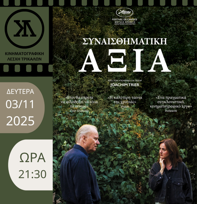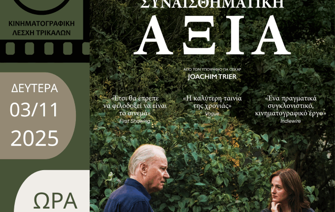 Δευτέρα 3 Νοεμβρίου 2025, Δημοτικός Κινηματογράφος Τρικάλων, ώρα 21:30.