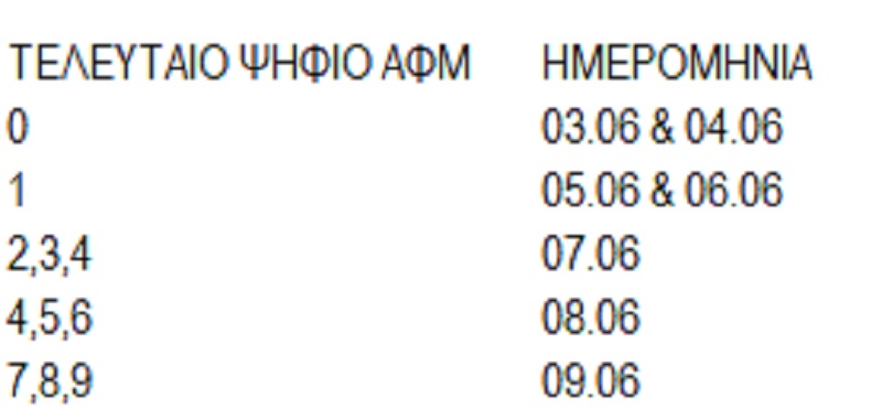 Η πλατφόρμα θα ανοίγει σταδιακά, ανάλογα με το τελευταίο ψηφίο του ΑΦΜ των ενδιαφερόμενων δικαιούχων έως τις 9 Ιουνίου και ώρα 23:59, ως εξής: