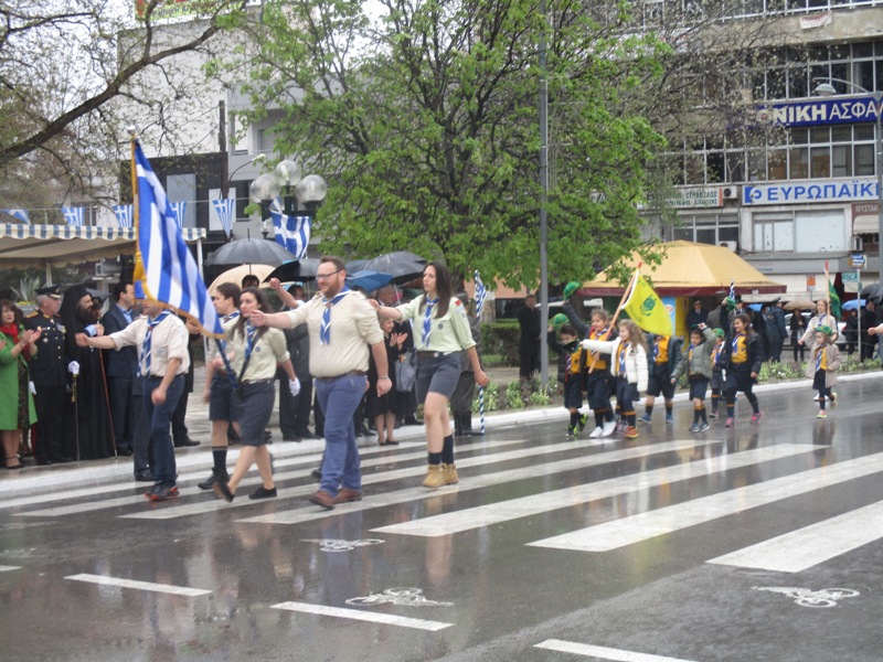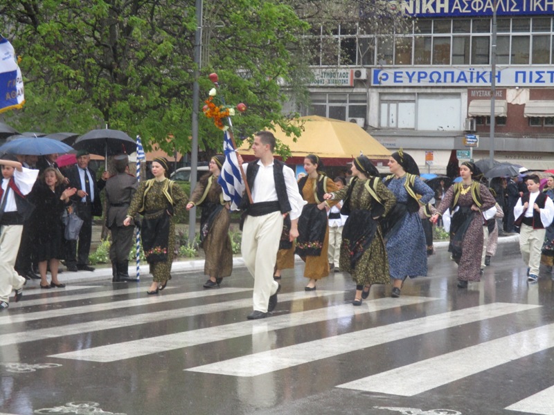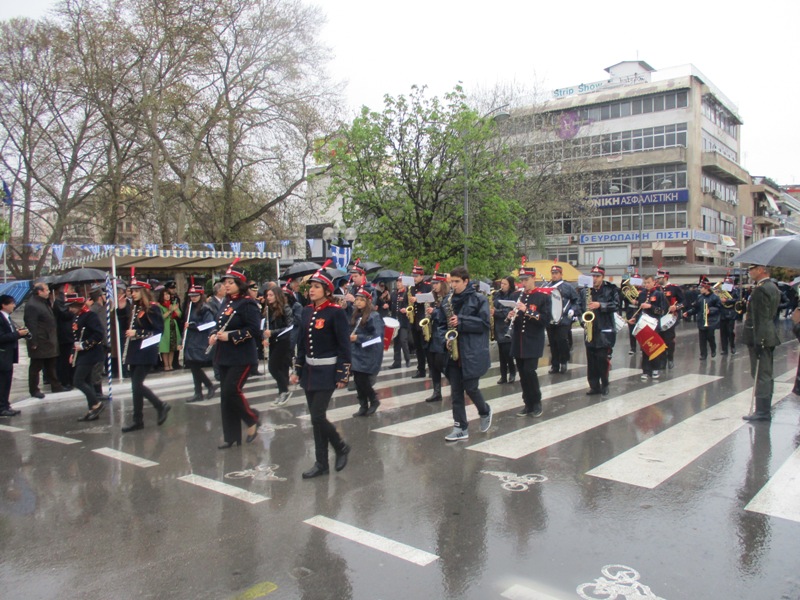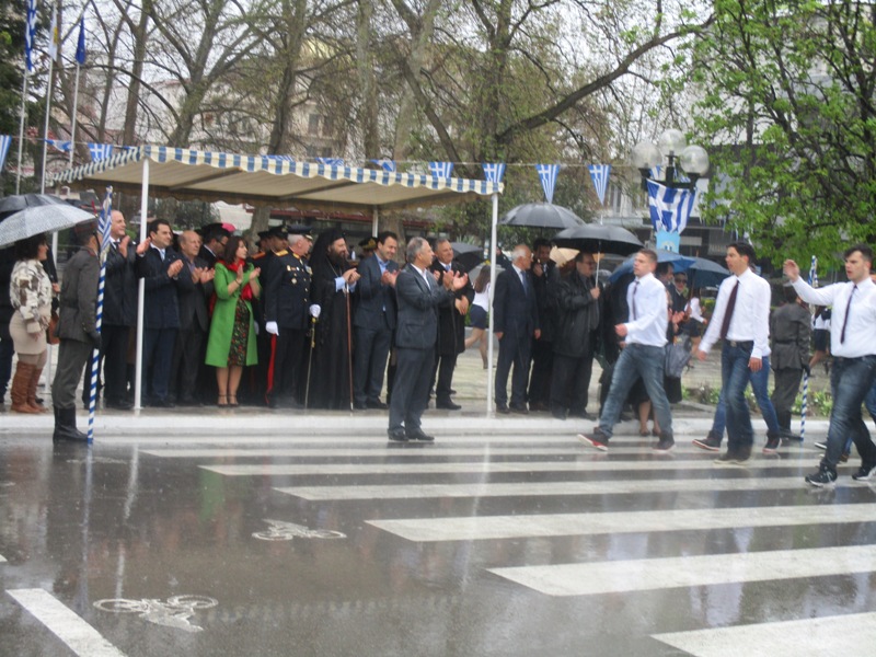 Με κρύο και βροχή και χωρίς τους μαθητές των δημοτικών σχολείων πραγματοποιήθηκε σήμερα η παρέλαση για την 25η Μαρτίου στα Τρίκαλα.