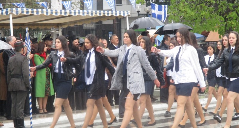Τα γυμνάσια, Λύκεια παρέλασαν υπό βροχή και με τσουχτερό κρύο καθώς η θερμοκρασία ήταν 5 με 6 βαθμούς Κελσίου